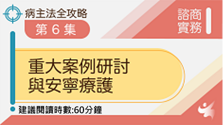 本課程聚焦於「未雨綢繆型ACP」諮商實務技巧,從告知與引導原則切入,深入解說家庭溝通實務作法,提供心理諮商技巧,並以Q&A形式提供ACP中常見問題與解答說帖。 學習時間:65分鐘 說明:為維護學習公平性,每門線上課程僅限修習一次,對應積分也僅能領取一次。如已完成,請勿重複選課喔!感謝您的配合與理解。